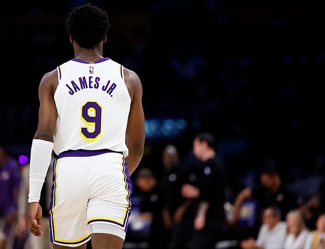 本场比赛中,湖人的替补后场新星布朗尼-詹姆斯(Bronny James)的表现非常一般。布朗尼全场出场22分49秒,投篮8中3,三分线外2中0,罚球2中1,得到了7分4篮板2助攻1抢断1盖帽的数据,还有3次犯规,正负值则是低到了全场最低的-24。布朗尼在进攻端效率不佳,他的得分能力和投射能力都没有发挥出来,他在传球和组织方面的表现也非常平庸,他在防守端也同样没有起到很好的效果,他的防守能力同样没有发挥出来。布朗尼在本场比赛中的表现实在是太灾难了,他在攻防两端都没有起到任何的效果,在场上完全是拖球队后腿的角色。不夸张地说,他的糟糕表现也是球队在本场比赛中最终遭遇失利的关键因素。