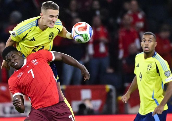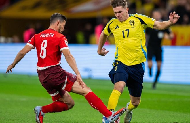 本场比赛瑞典排出352阵型。伊萨克和哲凯赖什搭档双前锋。伯恩哈德松、卢卡斯-贝里瓦尔、卡尔斯特伦、阿亚里和塞马5中场联袂出击。拉格比耶尔克、希恩和古德蒙松3后卫首发出战。维克托-约翰松担任首发门将。瑞典的首发阵容总身价高达3.11亿欧元,而瑞士的首发阵容总身价只有1.54亿欧元。